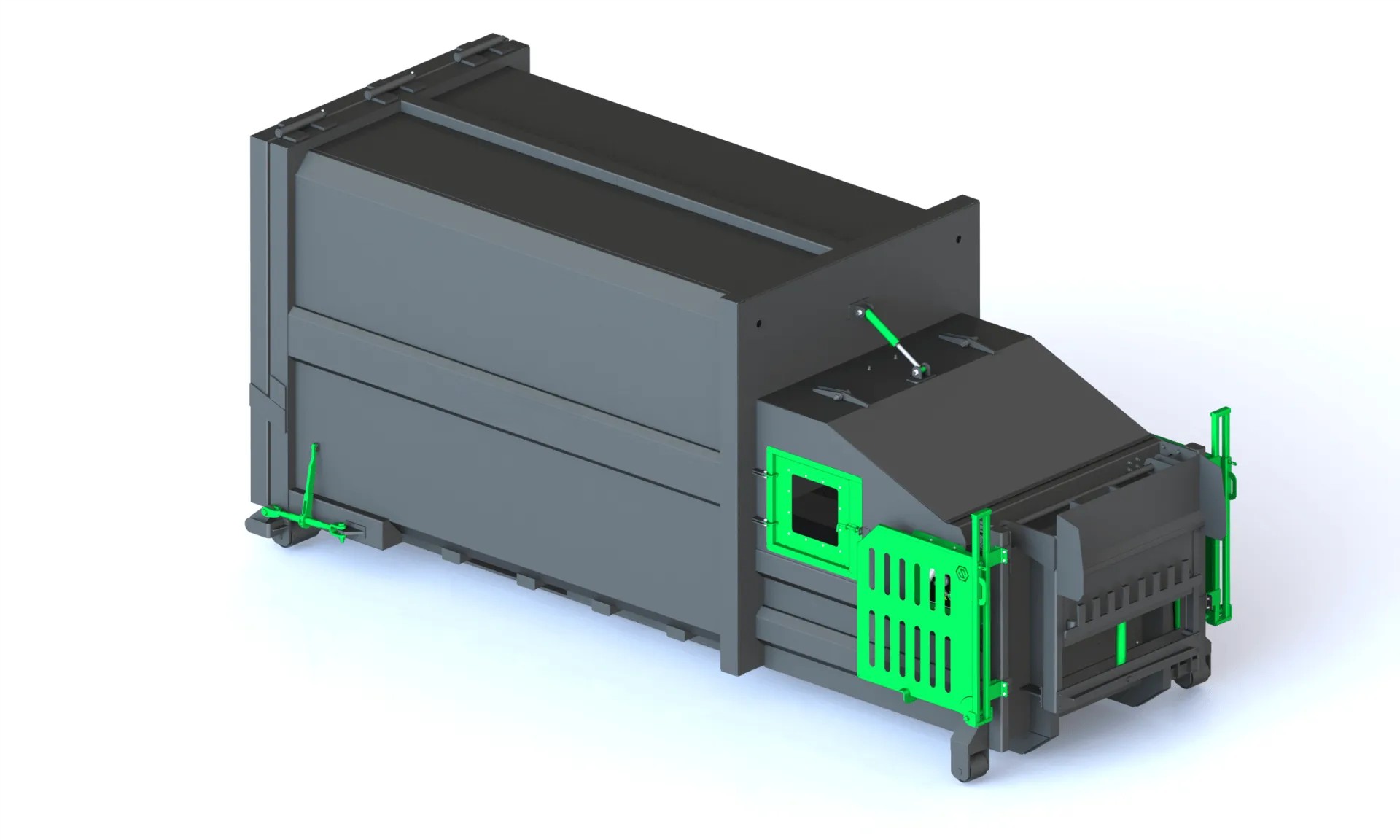 A key feature of the model is its ratchet-type turnbuckle locking device, which ensures a strong and secure seal when the unit is closed. This helps to contain waste effectively, minimise odours, and prevent leaks, while still being quick and easy for operators to open and secure during daily use.