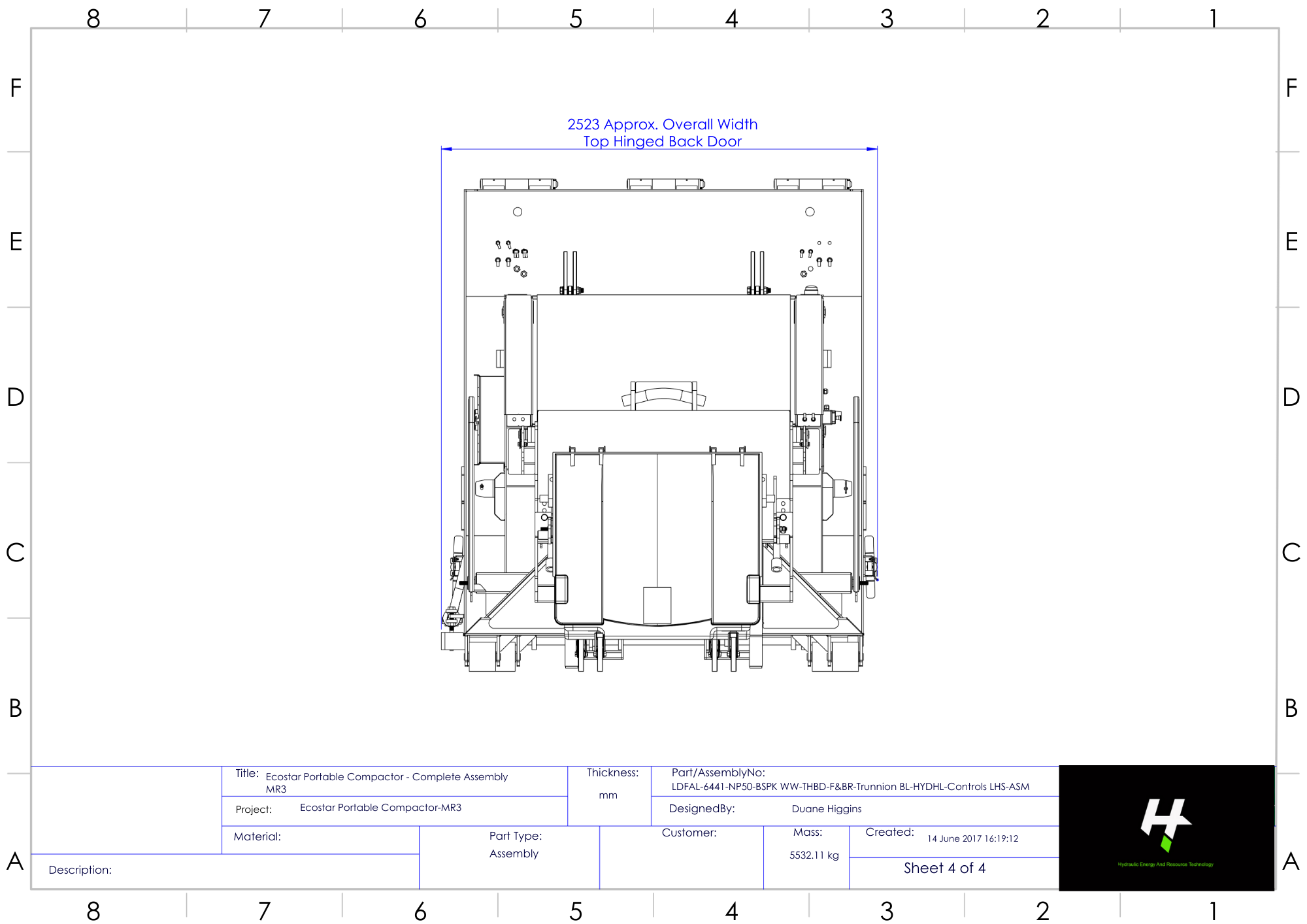 | Width | 2523 mm (Top Hinged Back Door) |