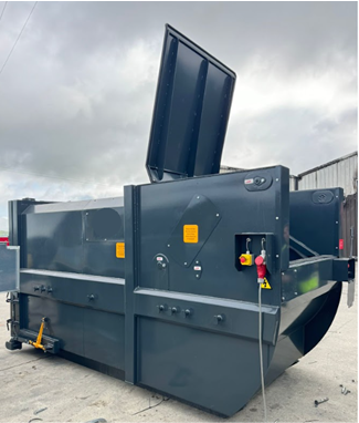 This model features a hand-fed front-loading hopper, allowing for straightforward and controlled waste input during day-to-day operations. The addition of a hydraulic lid enhances usability and safety, providing secure and effortless opening and closing while helping to contain odours and prevent spillages.